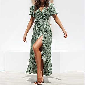 Vestido de verano largo de chifón largo con volantes, informal, dividido