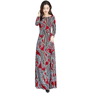 Vestido de verano largo de secado rápido con estampado bohemio, caftán, túnica roja, para playa, Q897, 2021
