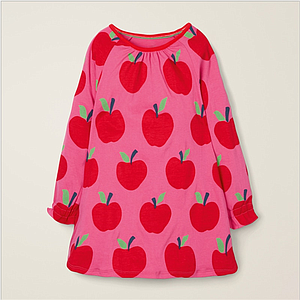 Ropa para niños en el otoño de 2020 el nuevo Collar redondo para niñas hecho de tejido de punto de algodón puro Vestido de manga larga para niños manzana