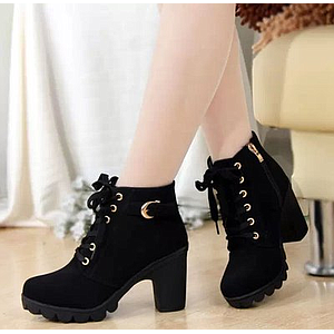 Botines de talla grande para mujer, botas de plataforma con cordones de tacón alto para mujer, zapatos sexis con hebilla de Color liso y punta redonda para mujer