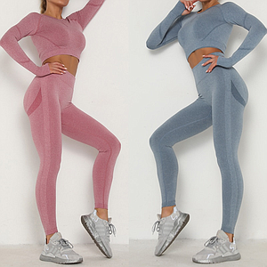 Mujeres Vital ropa de gimnasio sin costura Fitness Leggings + Camisetas recortadas traje de deporte mujeres establece chándal de manga larga traje de desgaste activo