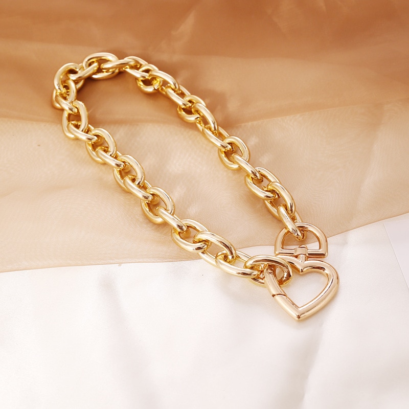 Collar de aleación gruesa con diseño geométrico de Hip Hop para mujer, gargantilla de corazón, clavícula, accesorios creativos de joyería