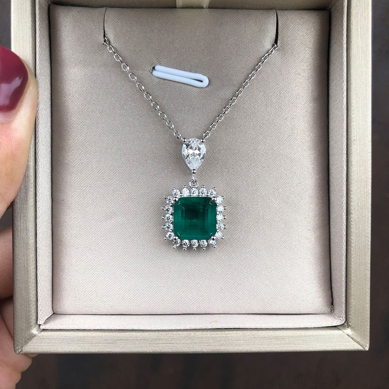 Elegant 9mm Square Green Zircon pendant necklaces for women Top Quality Sparkling Zircon Wedding Engagement party jewelry