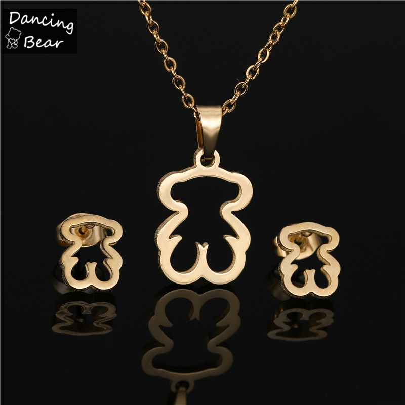 Conjunto de collar y pendientes de acero inoxidable para mujer, juego de collar y pendientes de Color dorado, con diseño de trébol y Cruz de oso, joyería que nunca pierde Color