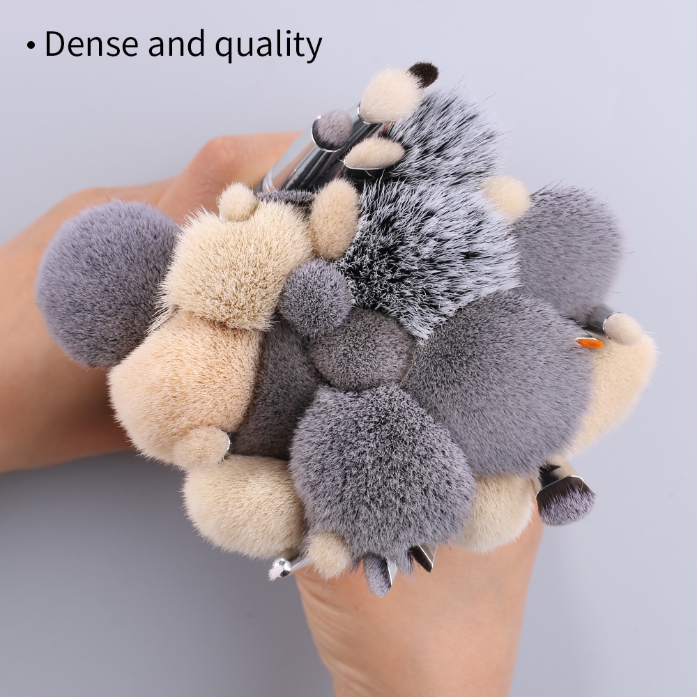 we special choose Natural goat pony hair,Natural goat hair Touch skin -friendly and will have ice muscle touch,suitable for all skin types with no stimulation .Natural animal hair are softness like no other.They are fluffy and have excellent ability to grasp powder.It can apply amazing blending and apply makeup evenly. And eyebrow and eyeliner are thin and Precise.