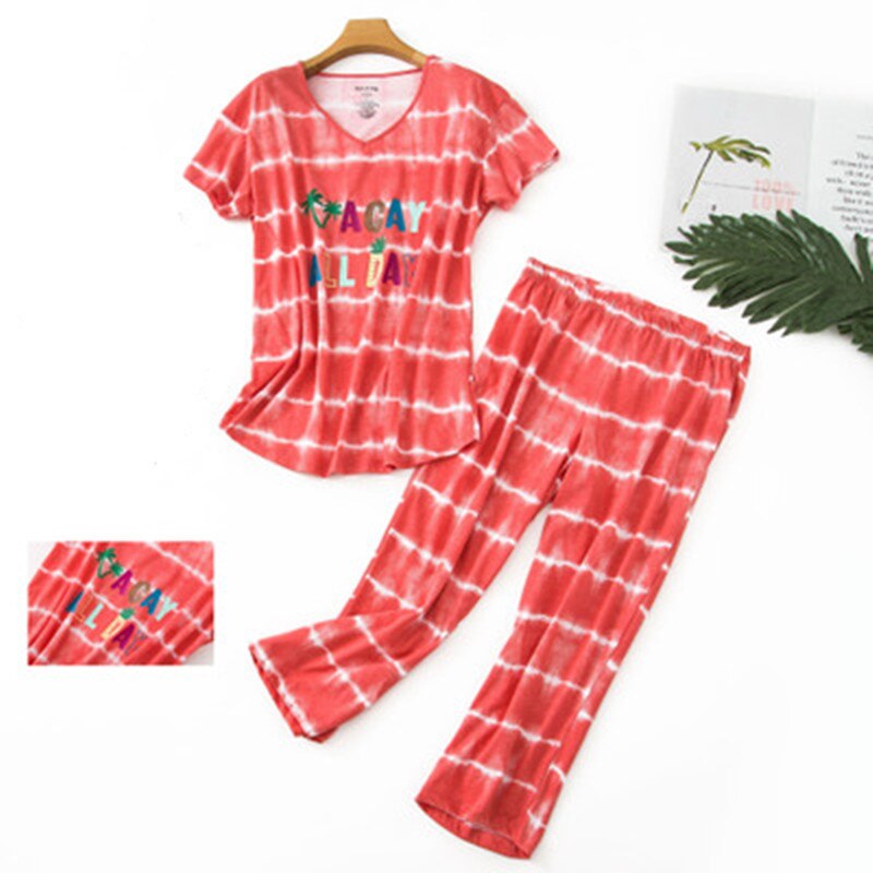 Conjunto de pijama de algodón de manga corta, camiseta de pantalón largo 2 unid/set, pijama Sexy de verano, ropa de dormir de talla grande para mamá y hogar