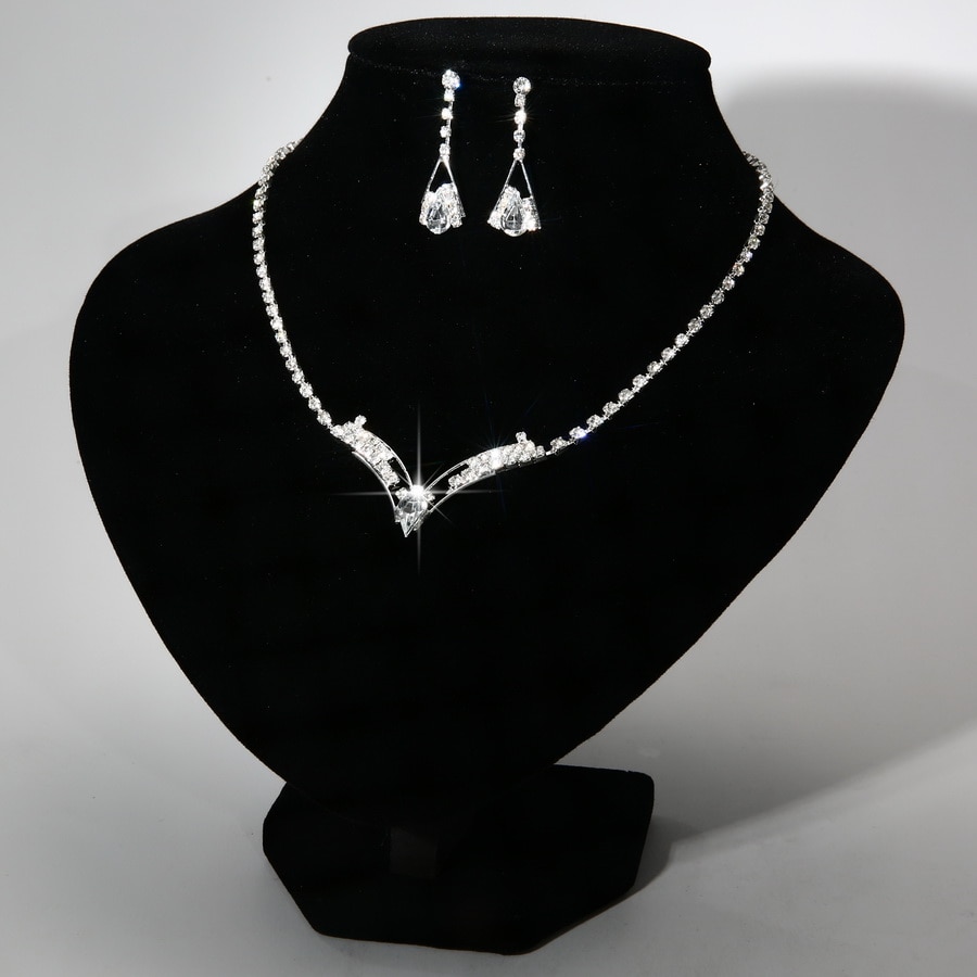 Jewerly Sets Wedding Bridal Set Drop Earring Jewelry Women Sparkling V Shaped Rhinestone Australia Crystal Necklace for Women