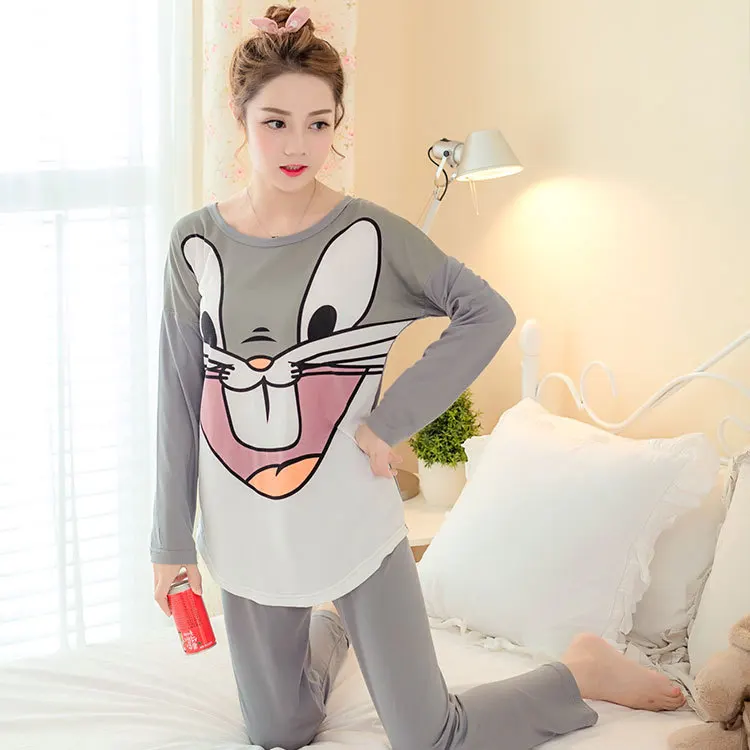 Conjuntos de pijamas para mujer, ropa de dormir de dibujos animados Kawaii Totoro de cuello redondo para verano 2020, pijama informal de mujer de noche para Otoño e Invierno