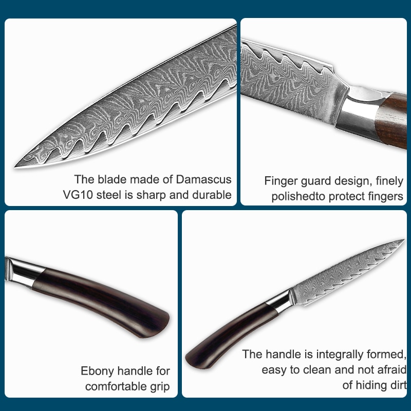 Fruit Knife 3.5 Inch Damascus VG10 Steel Kitchen Knife Professional Vegetable Cooking Knife Ebony Handle Peeling Tool