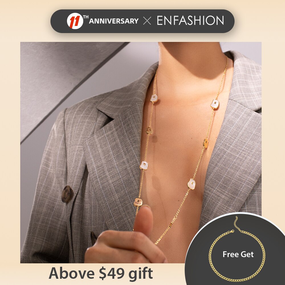 ENFASHION-collar con colgante de concha Natural Irregular para mujer, Gargantilla larga de acero inoxidable, Color dorado, joyería P193047