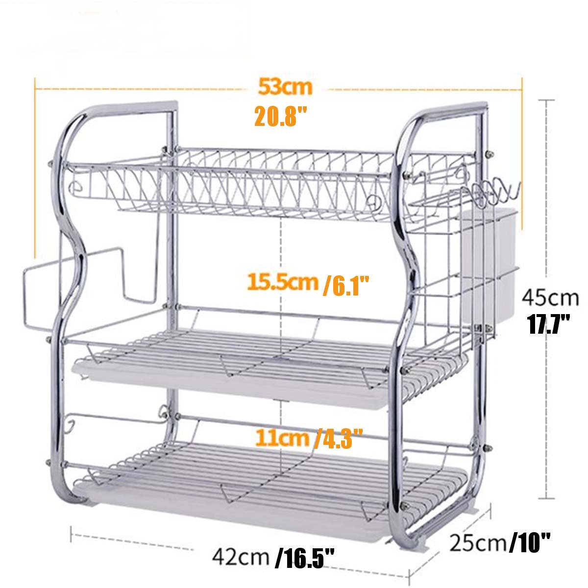 2/3 Layer Tier Stainless Steel Dish Drainer Cutlery Holder Rack Drip Tray Kitchen Tool