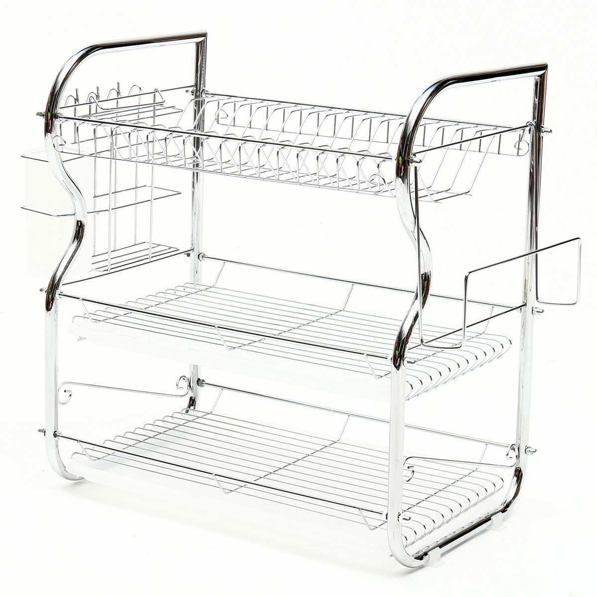 Feature: - 100% Brand new. - Nice design looks modern and elegant. - This three tier dish drainer is one of the best looking design available in the market. - Made with durable stainless steel makes it both elegant and long life. - It comes with plastic drip tray equipped to hold drip easily and effectively. - It is easy to assemble and very easy to wipe clean and maintain. Require self assembly.