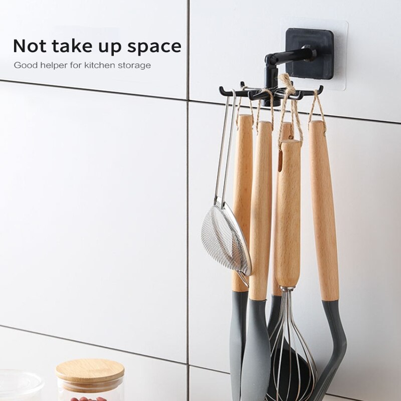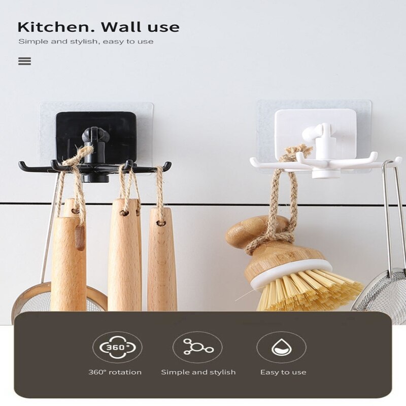 Ganchos de cocina giratorios multiusos de 360 grados, autoadhesivos, 6 ganchos, para puerta de pared del hogar, bolso de mano, colgador de bolsas de ropa