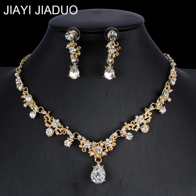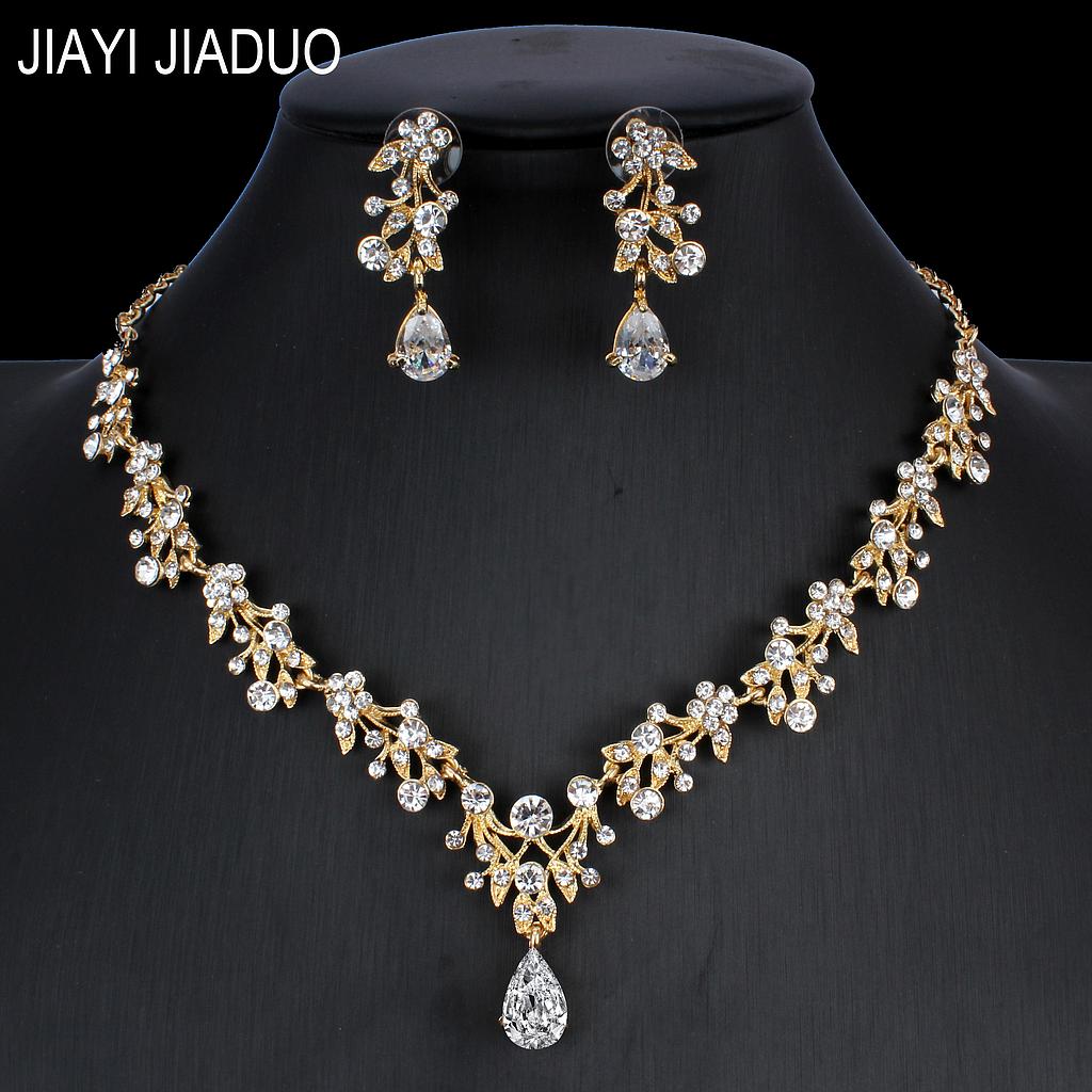Jiayijiaduo-Conjunto de joyería para mujer joyas de matrimonio, conjunto de pendientes y collar de gota para boda, Color dorado