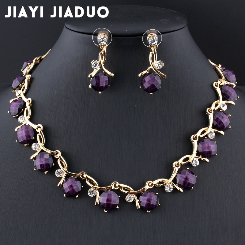 Jiayijiaduo-juegos de joyas para mujer, accesorios para vestido de banquete, collar de resina púrpura, pendientes de Color dorado