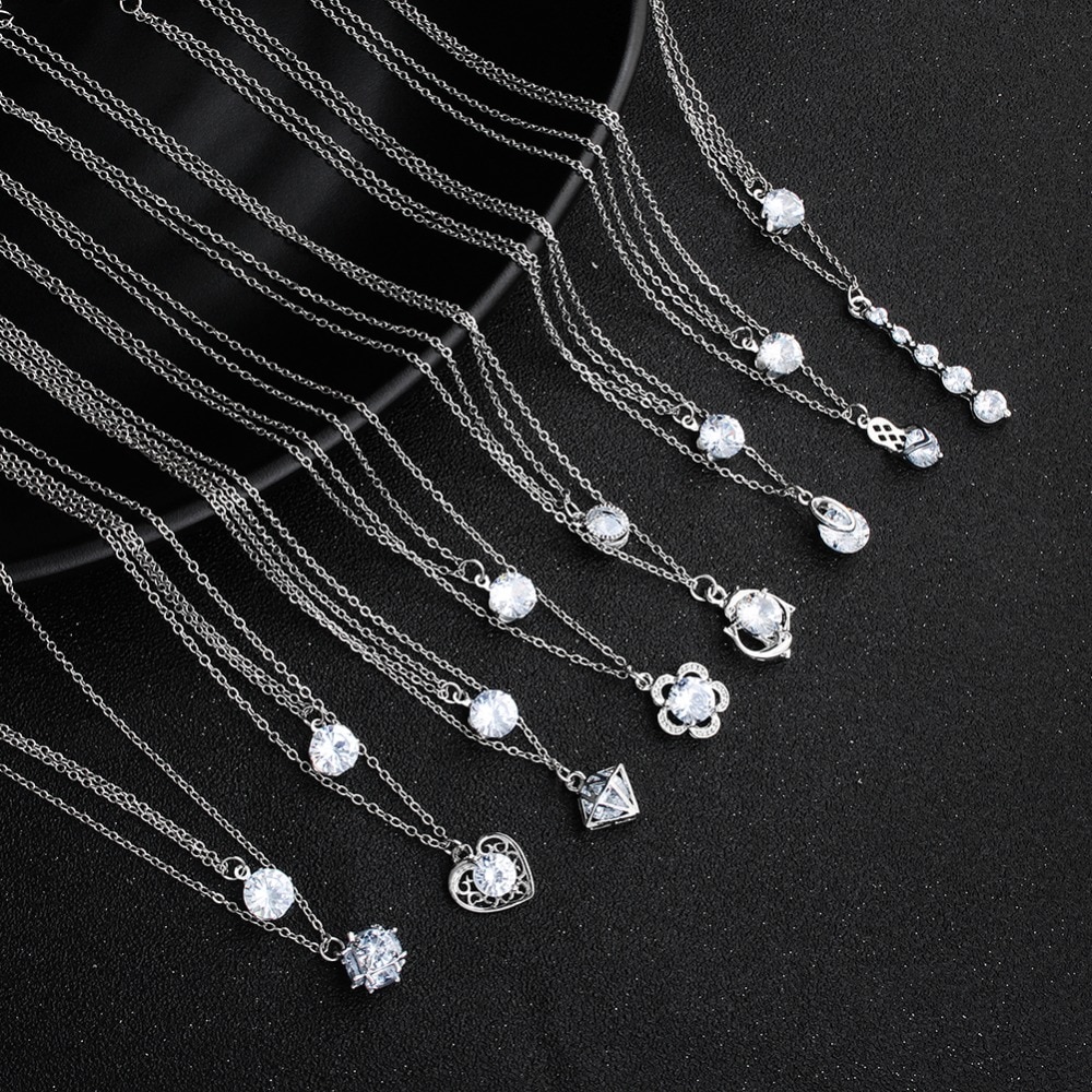 Miallo-Conjunto de collar y pendientes de circonia cúbica para dama de honor, conjunto de joyería, doble cadena, Circonia cúbica, Zirconia, circonita, zirconita, boda