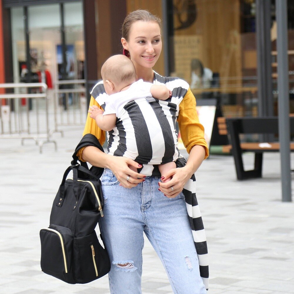 Mochila portabebés ergonómica a rayas con tirantes para bebé, envoltura elástica transpirable, bolsos cómodos para bebé, accesorios para bebé