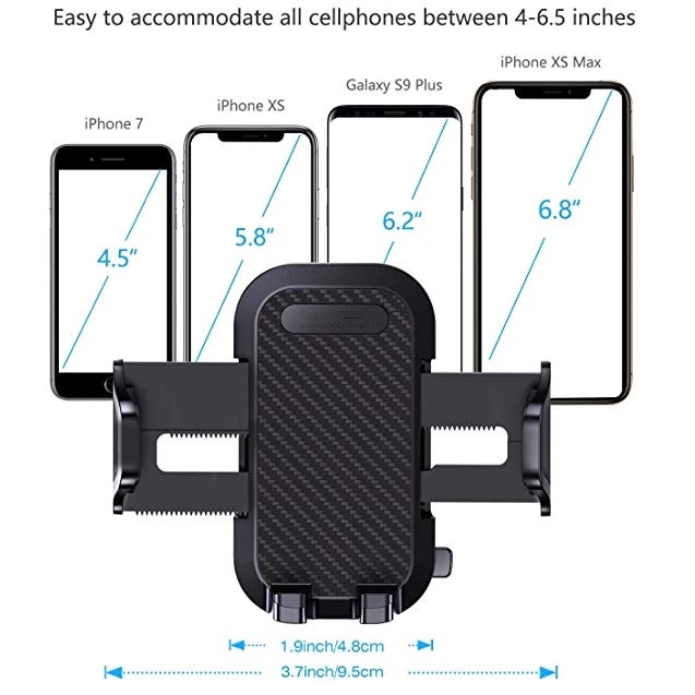 § One-Touch Mechanism: The quick release button of the car phone mount allows you to easily mount and remove your smartphone with one hand motion, simple of operation, save time and power.