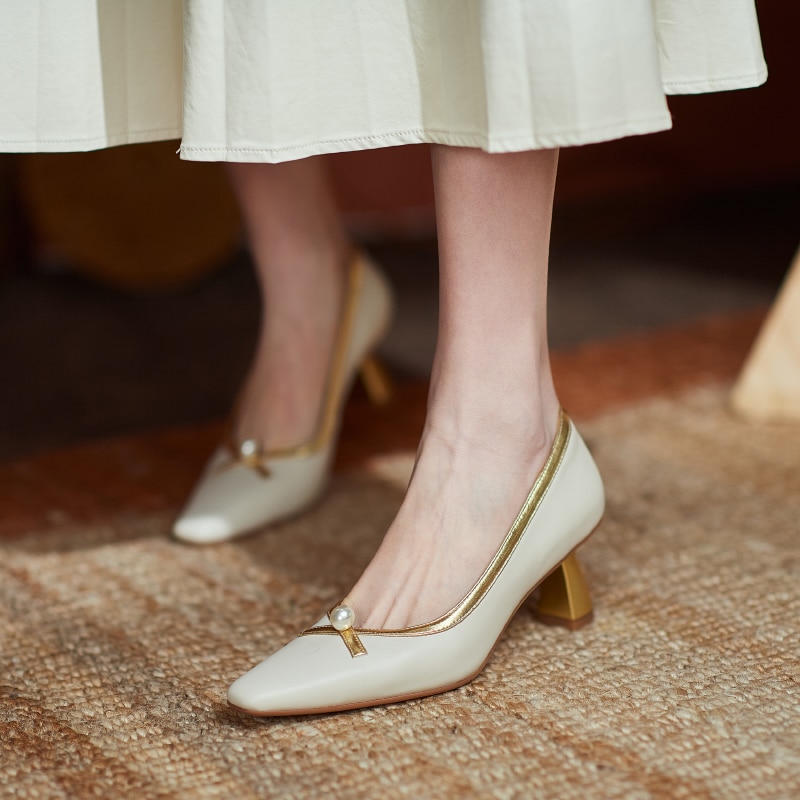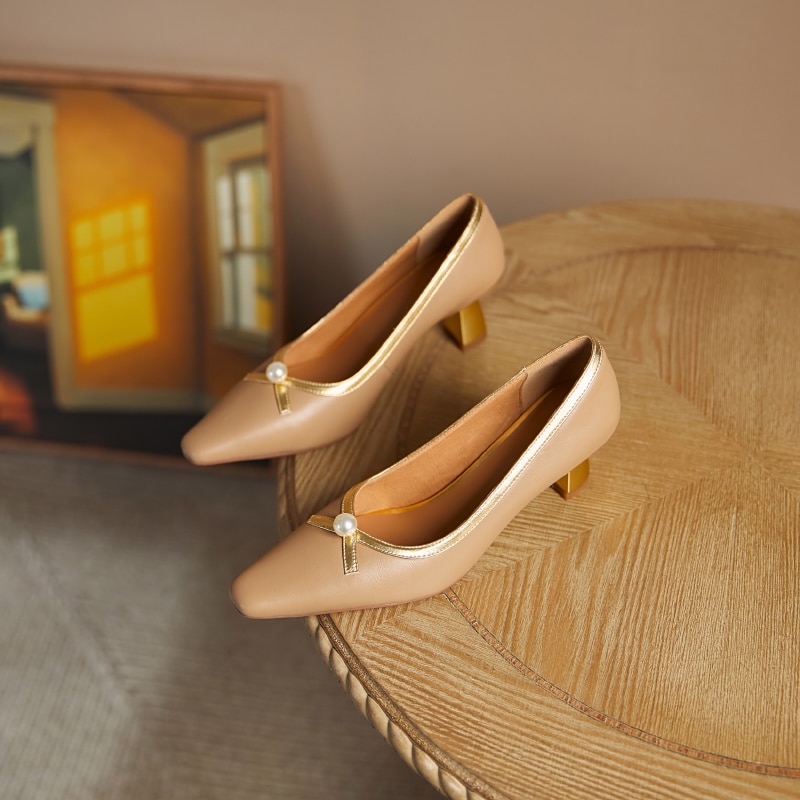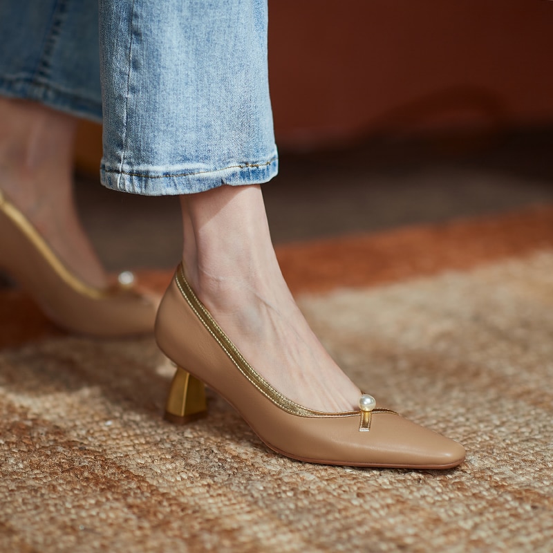 New Genuine Leather Women's Shoes Retro Slip-On Spring/Autumn Shallow Pumps Square Toe High Heel Handmade Shoes Woman Size 34-39