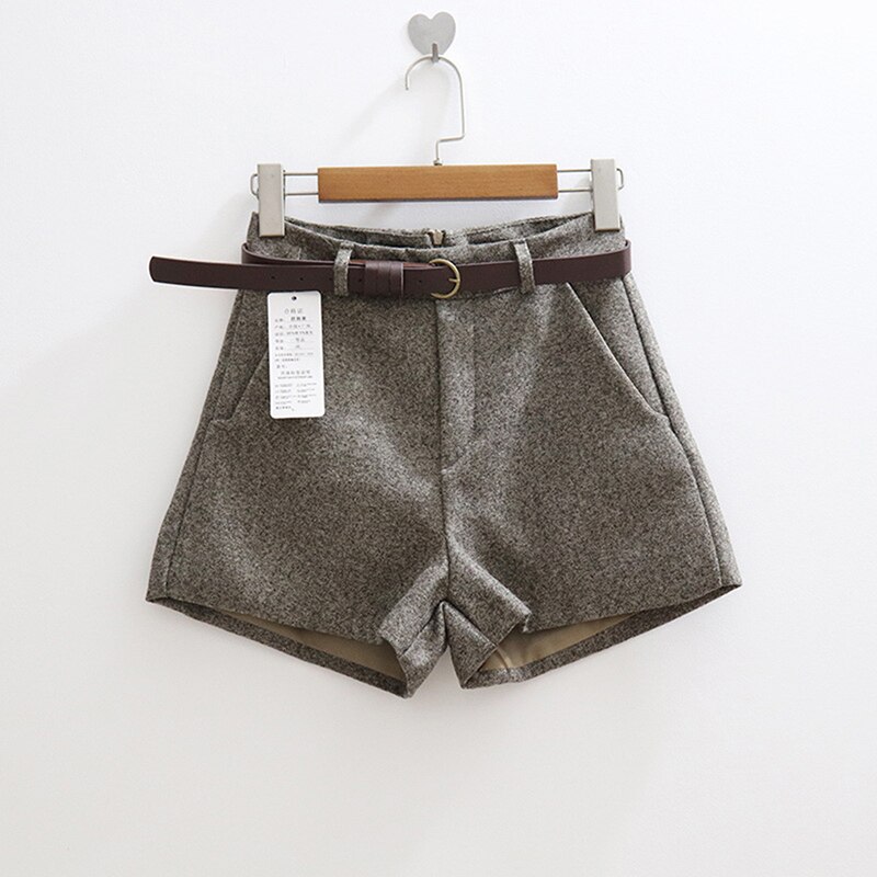 Pantalones cortos informales cómodos y elegantes para mujer, Shorts con cinturón, de lana, ajustados, de pierna ancha, Bigsweety, para Otoño e Invierno