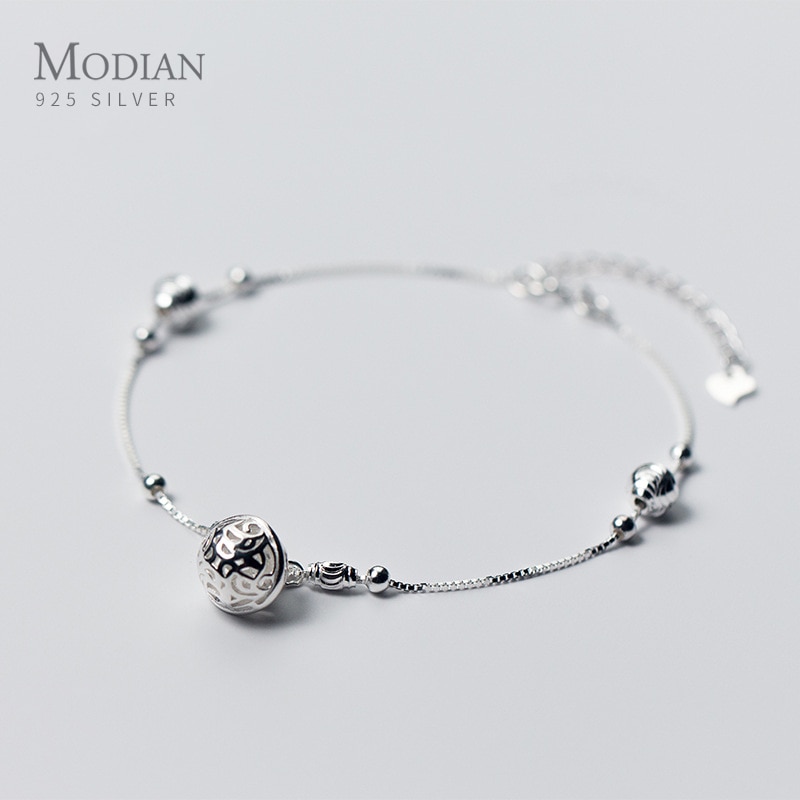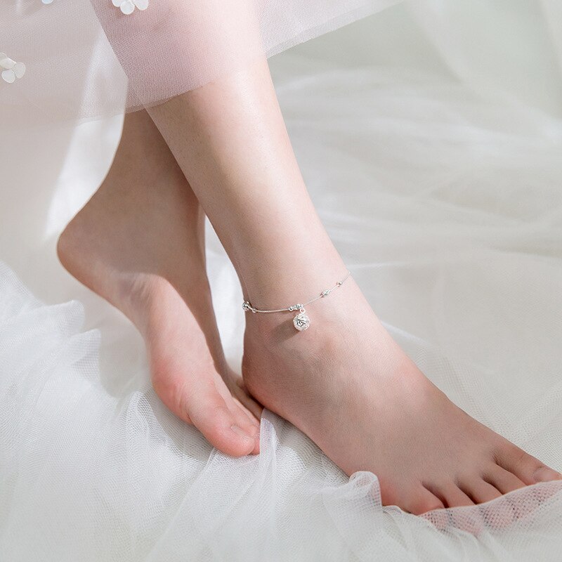 Pulsera de tobillo con cuentas de bolas para mujer, pulsera para tobillo con cuentas de campana, cadena de plata fina 925 auténtica, joyería fina