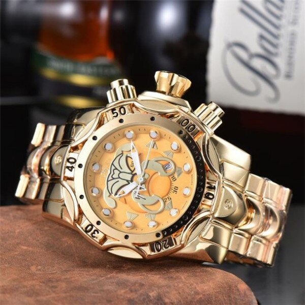 Reloj de pulsera de acero inoxidable invicto para hombre, analógico, con logotipo de perro, de cuarzo, de negocios, Reloj para hombres