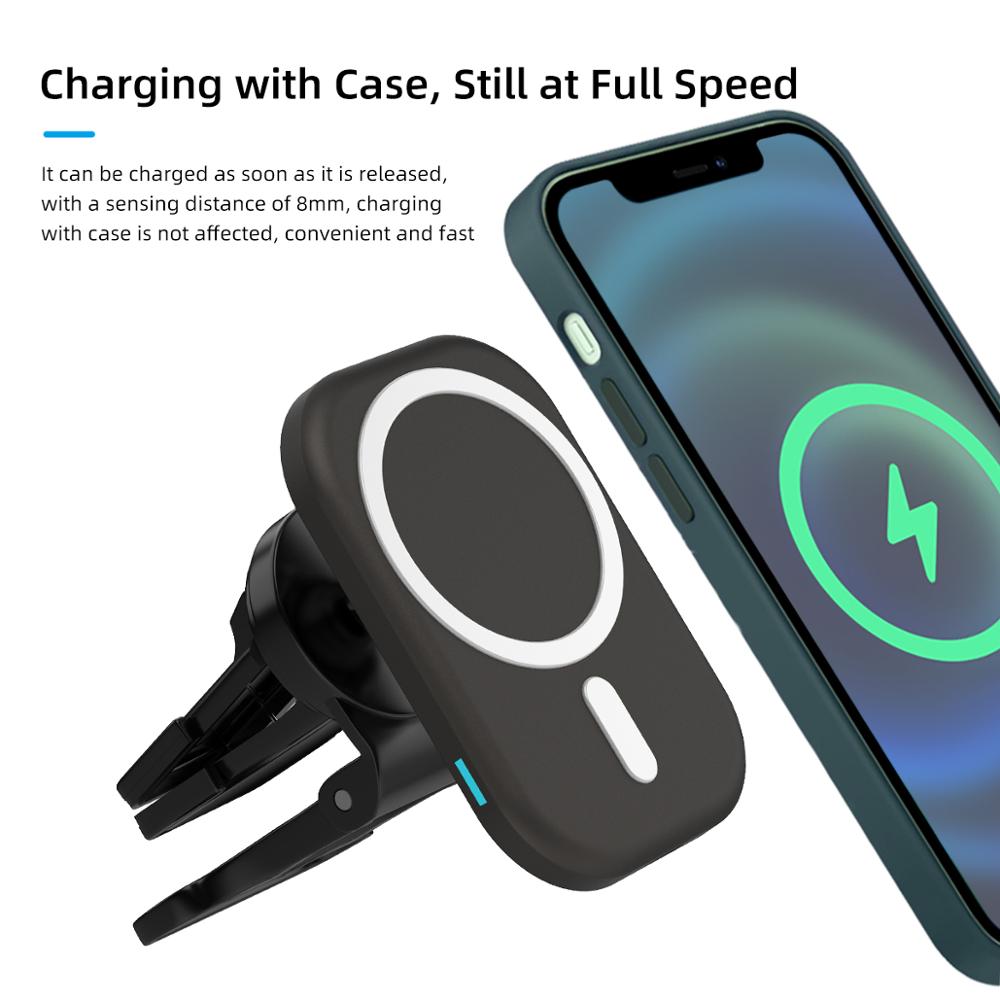 Soporte magnético inalámbrico para cargador de coche, 15W, para iPhone 12, Mini Pro Max, carga rápida, cargador portátil