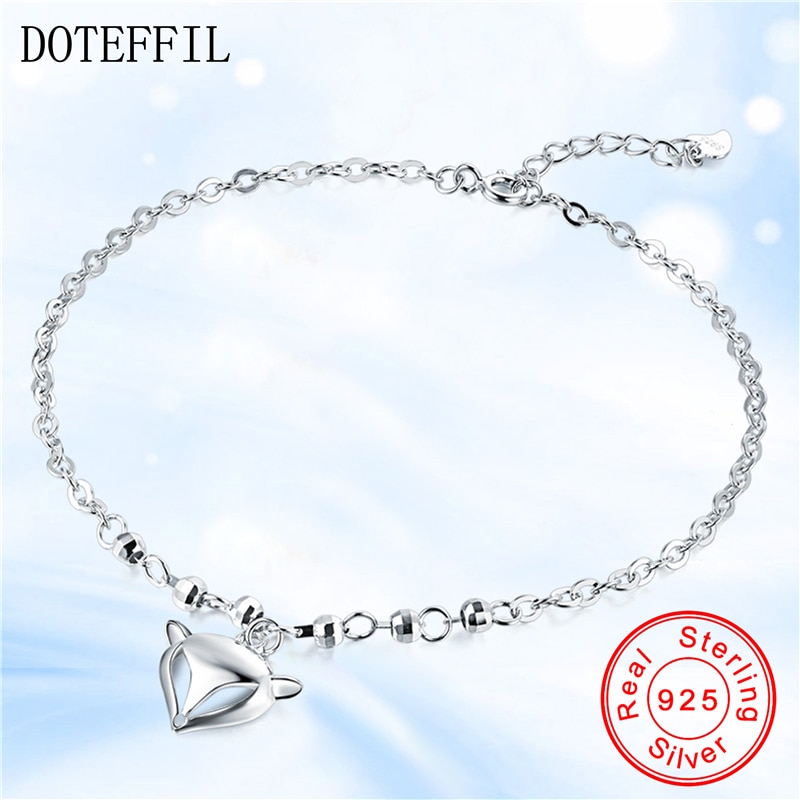 Tobilleras de plata fina para mujer, tobillera con colgantes de animales de zorro, joyería de plata 925, pulsera de tobillo de estilo Simple 925