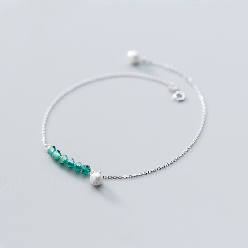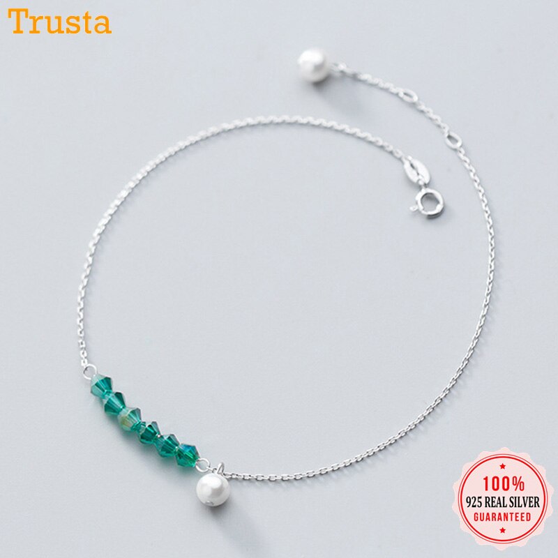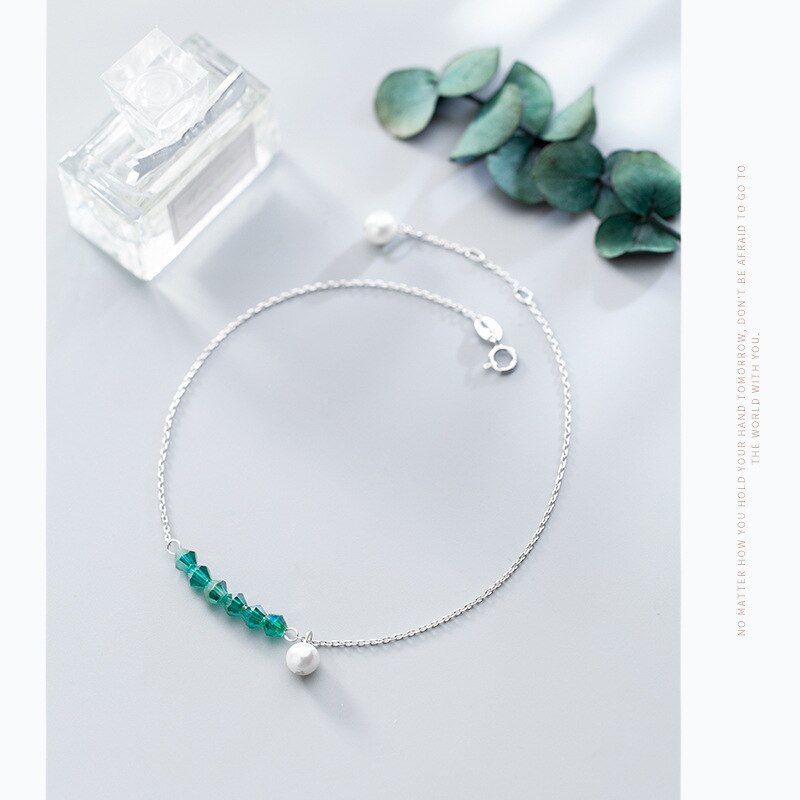 Trustdavis-tobillera de perlas para mujer y niña, 100% Plata de Ley 925 de síntesis de circón verde, regalo de cumpleaños para el Día de San Valentín DS1409