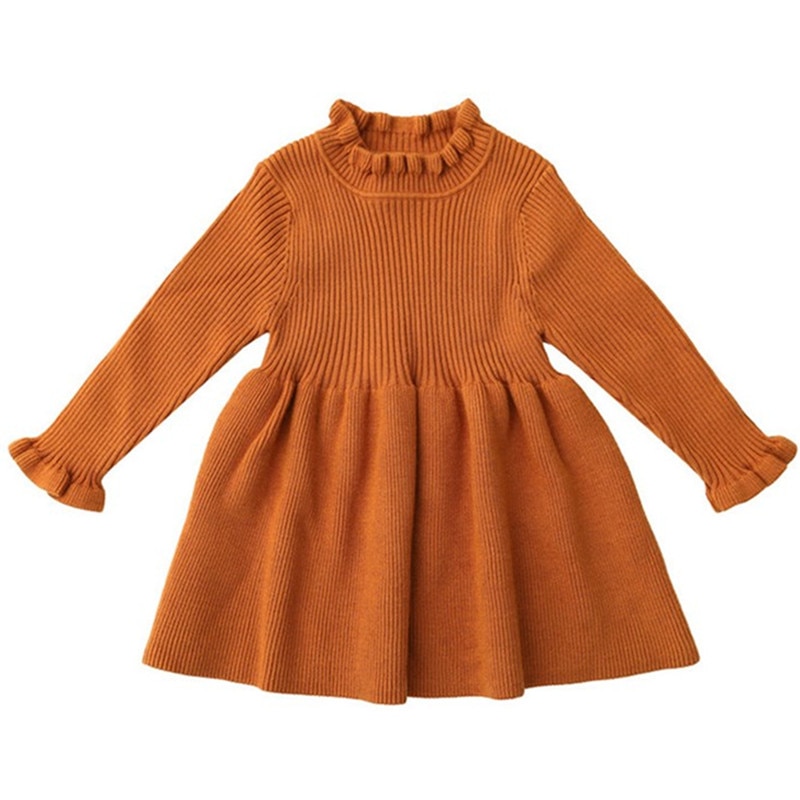 Vestidos de bebé para niñas, Otoño Invierno, manga larga, vestido tejido de princesa, cuello de hoja de loto, vestido cálido, ropa de bebé para niñas