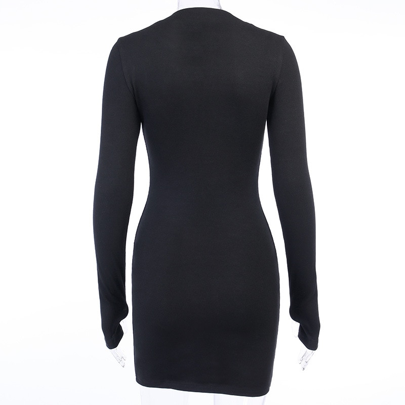 Vestidos de Otoño de manga larga con cremallera para mujer, vestidos de Color sólido con cuello redondo para fiesta, compras, ropa de uso diario