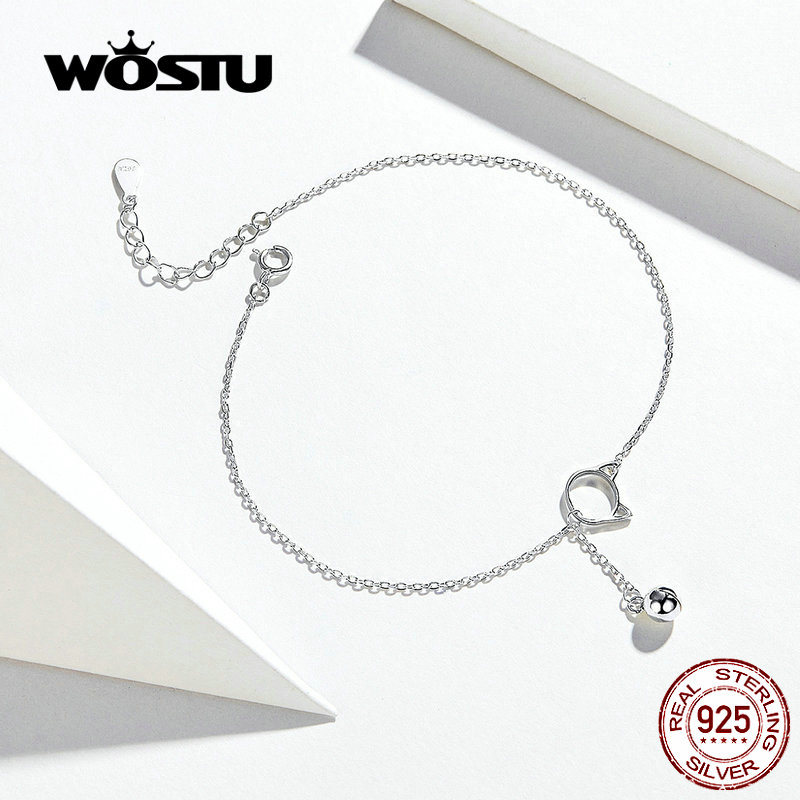 WOSTU-tobillera de Plata de Ley 925 con cuentas de gato para mujer, joyería para pie, de sandalia tobillera para pies descalzos, cadena para tobillo, regalos CQT003